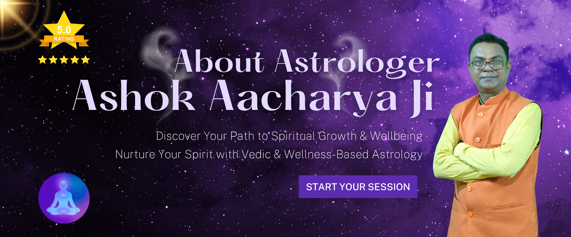 Born into a respected family devoted to Sanatan philosophy and ancient Vedic knowledge, Ashok Acharya Ji developed a deep connection with astrology and spiritual sciences from a young age. His lifelong dedication to understanding the movement of planets, cosmic energies, vibrations and human consciousness has shaped him into one of the most respected astrologers in the region.
